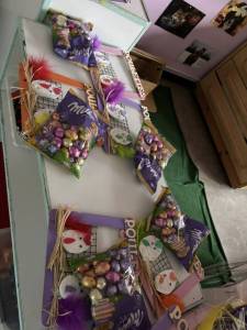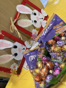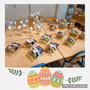 Des loulous bien gâtés!!! Le lapin, la poule ou les cloches??? Peu importe, nos élèves ont été gâtés en arrivant en classe ce matin.